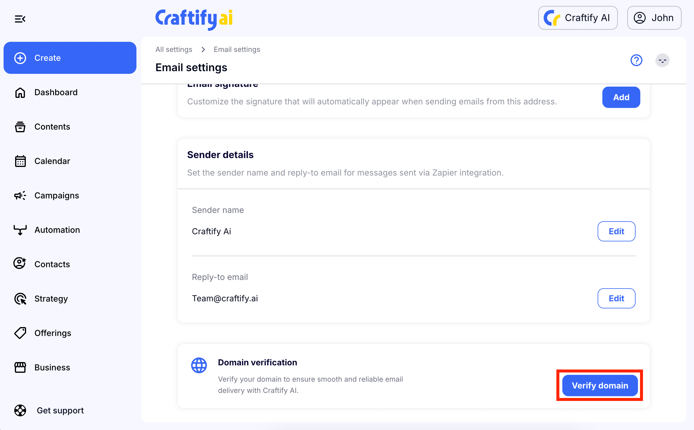 - Step 3: Head back to Craftify AI Email Settings to set up your Domain