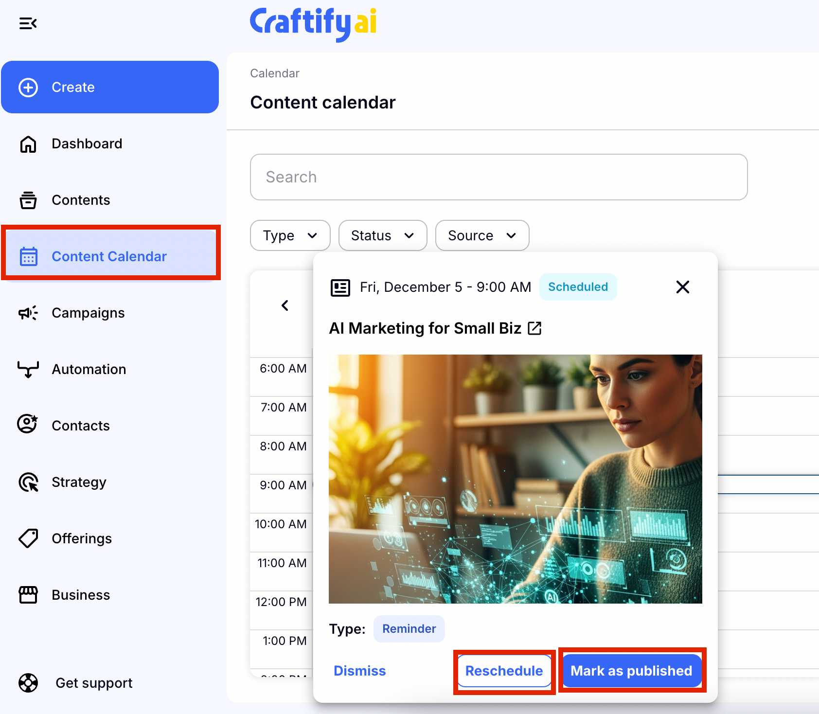 - Optional Step: Check out your post reminder in the Content Calendar