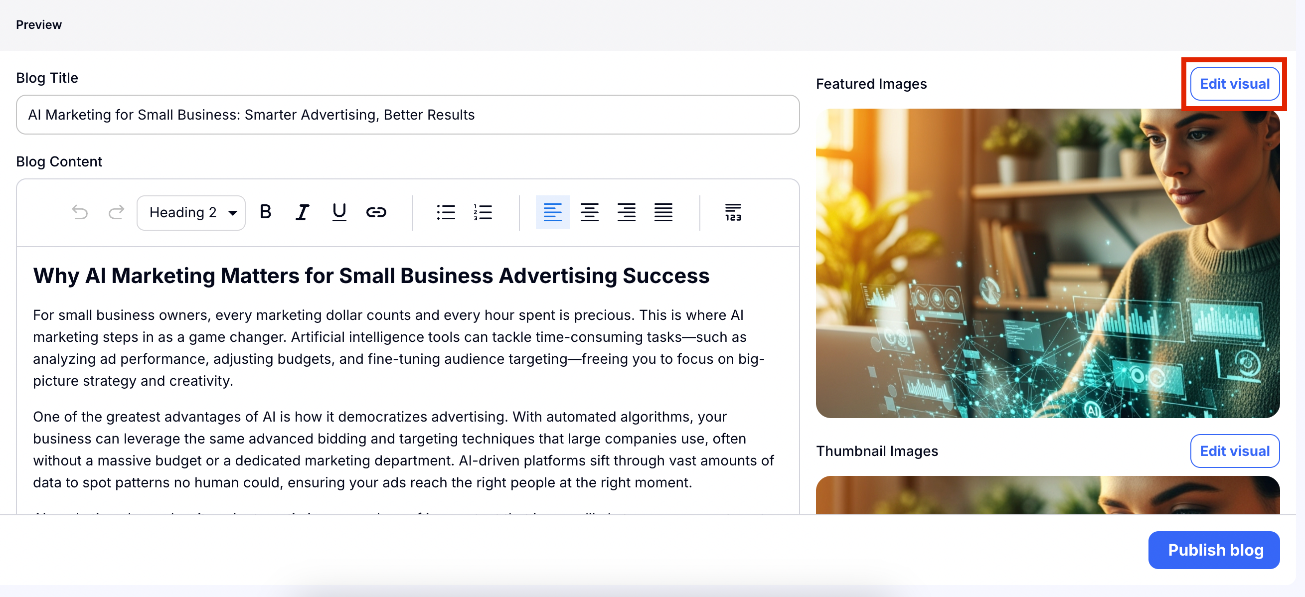 Step 5: Review your blog post and edit your visual