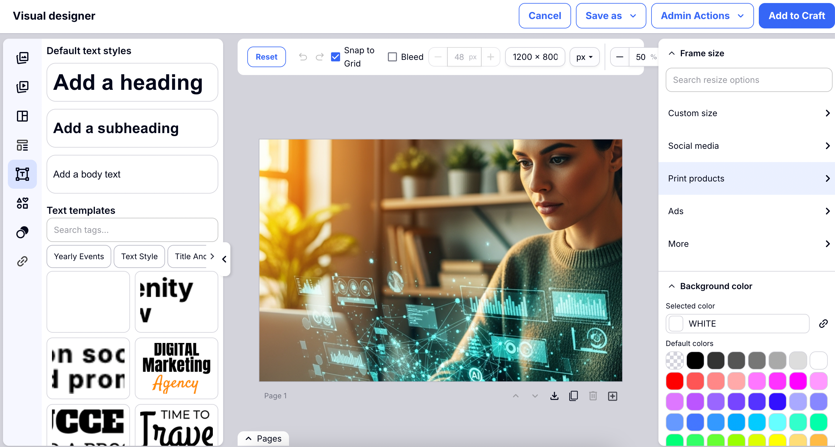 You can use all of the many tools within the Visual Designer to edit your image. Here you can also create new images, add text, shapes, color, anything your heart desires!