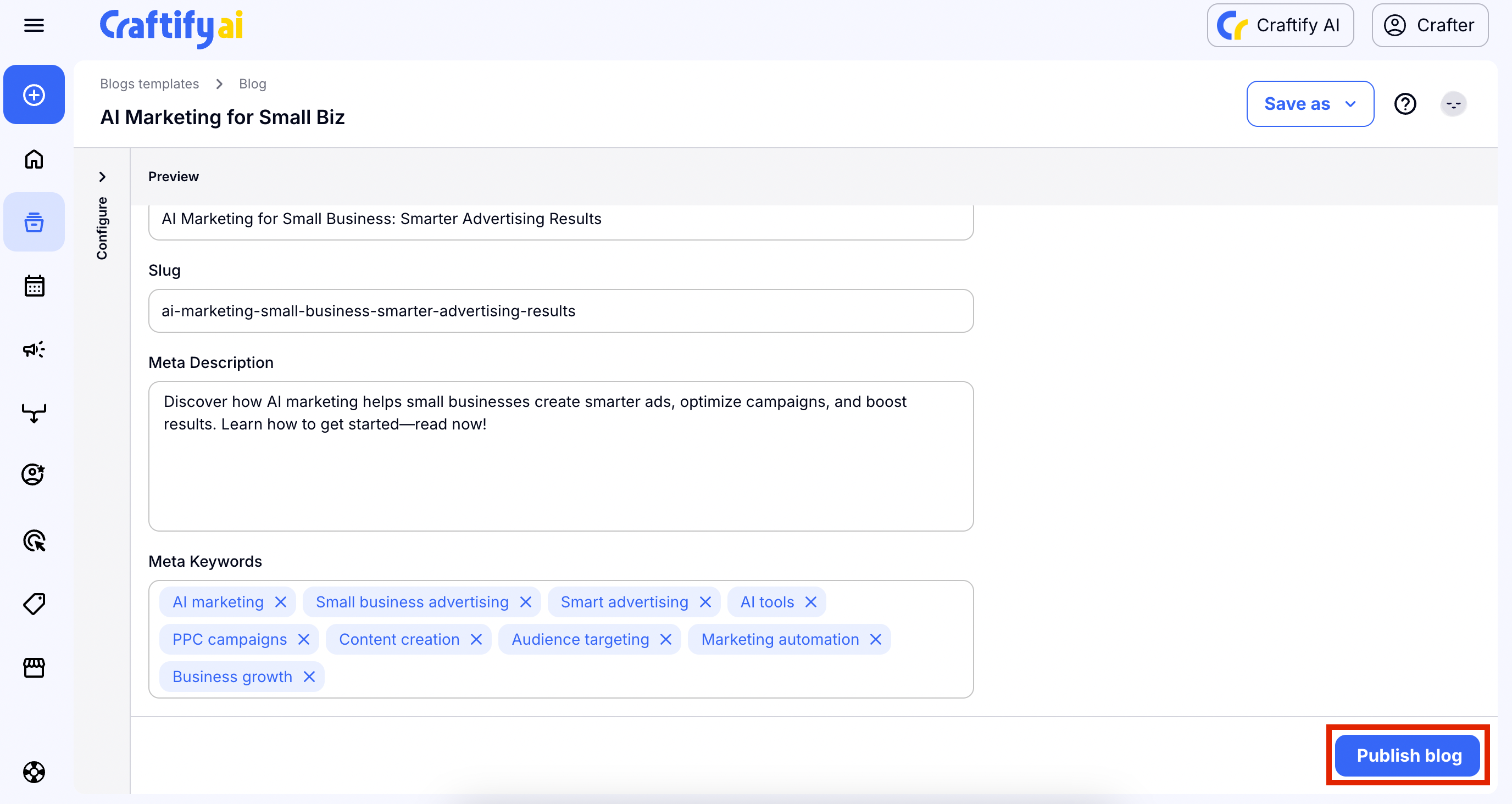 - Step 4: Now you can Craft the blog post!