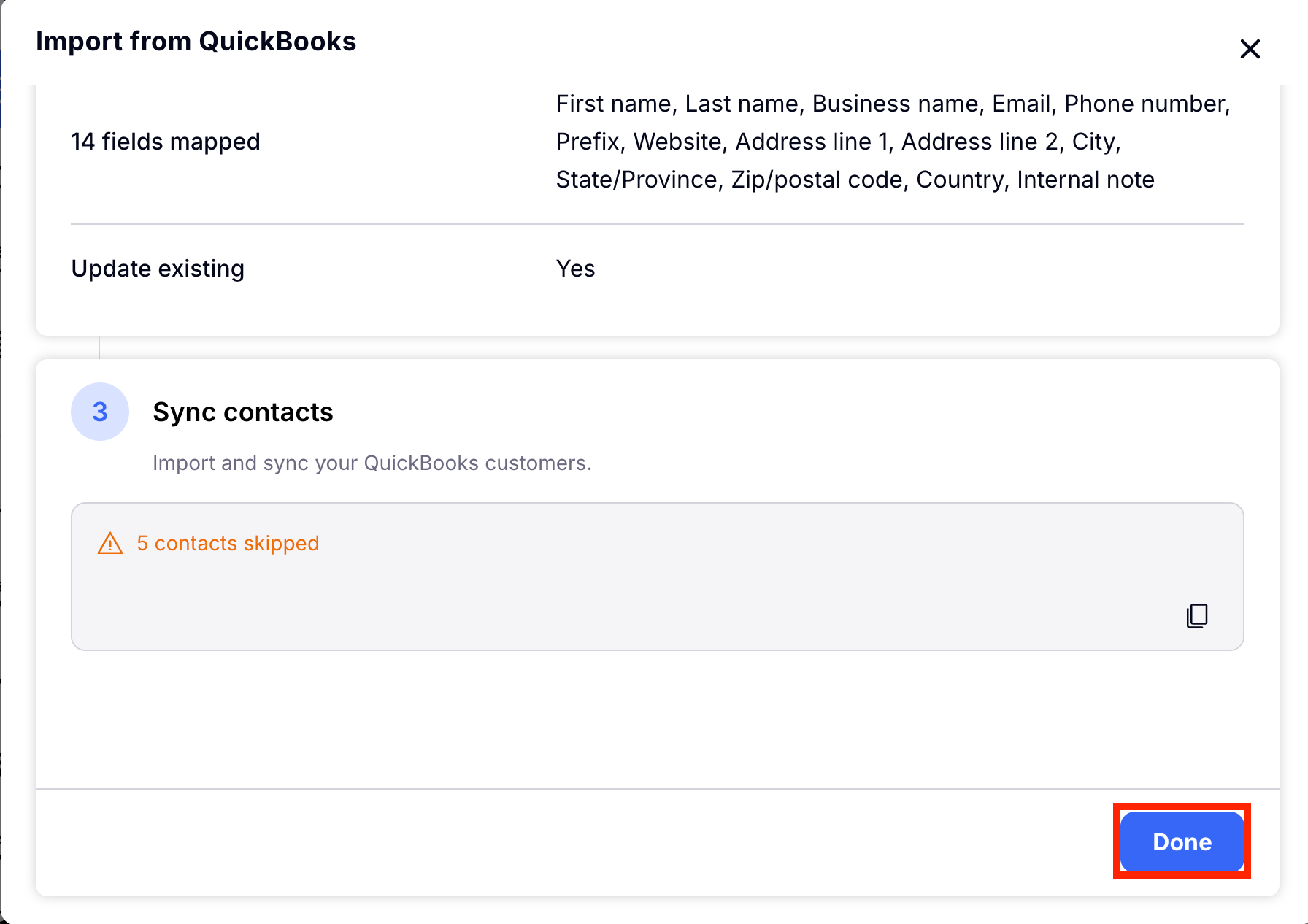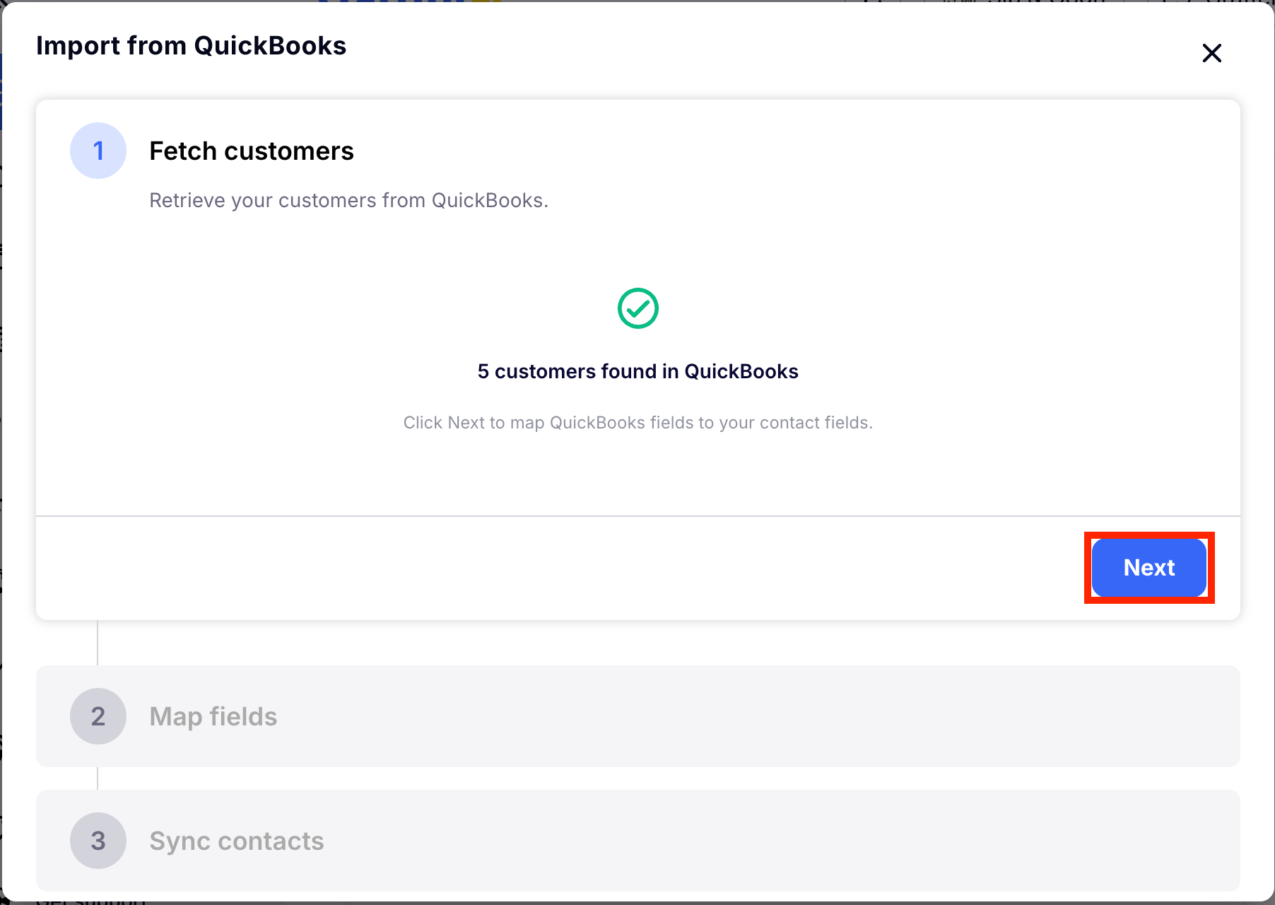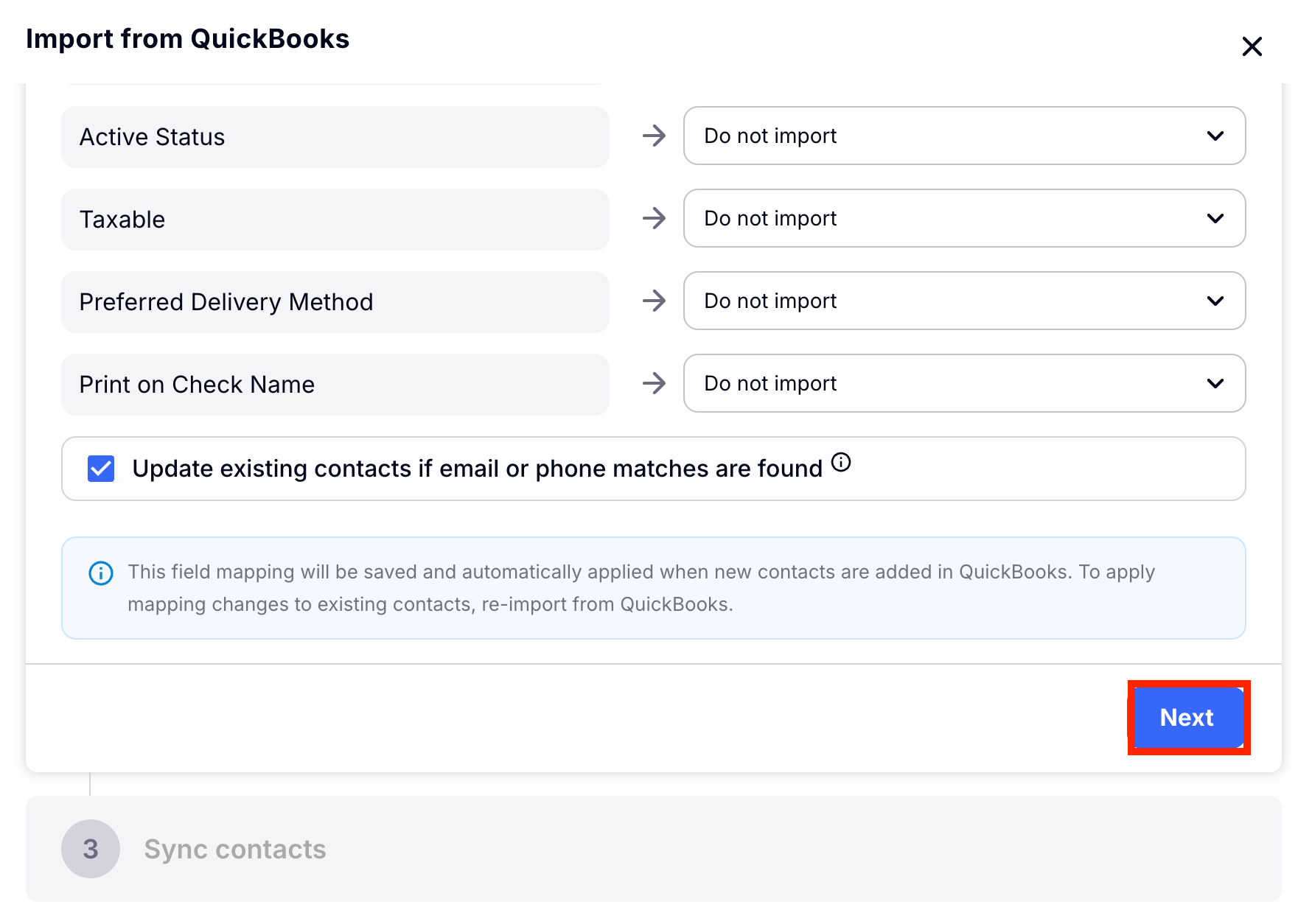 Step 4: Sync your Quickbooks Contacts