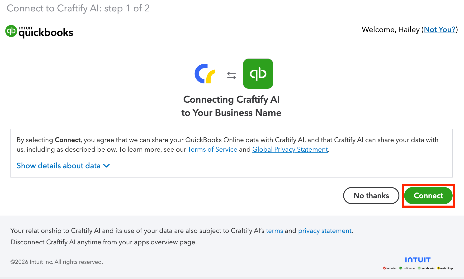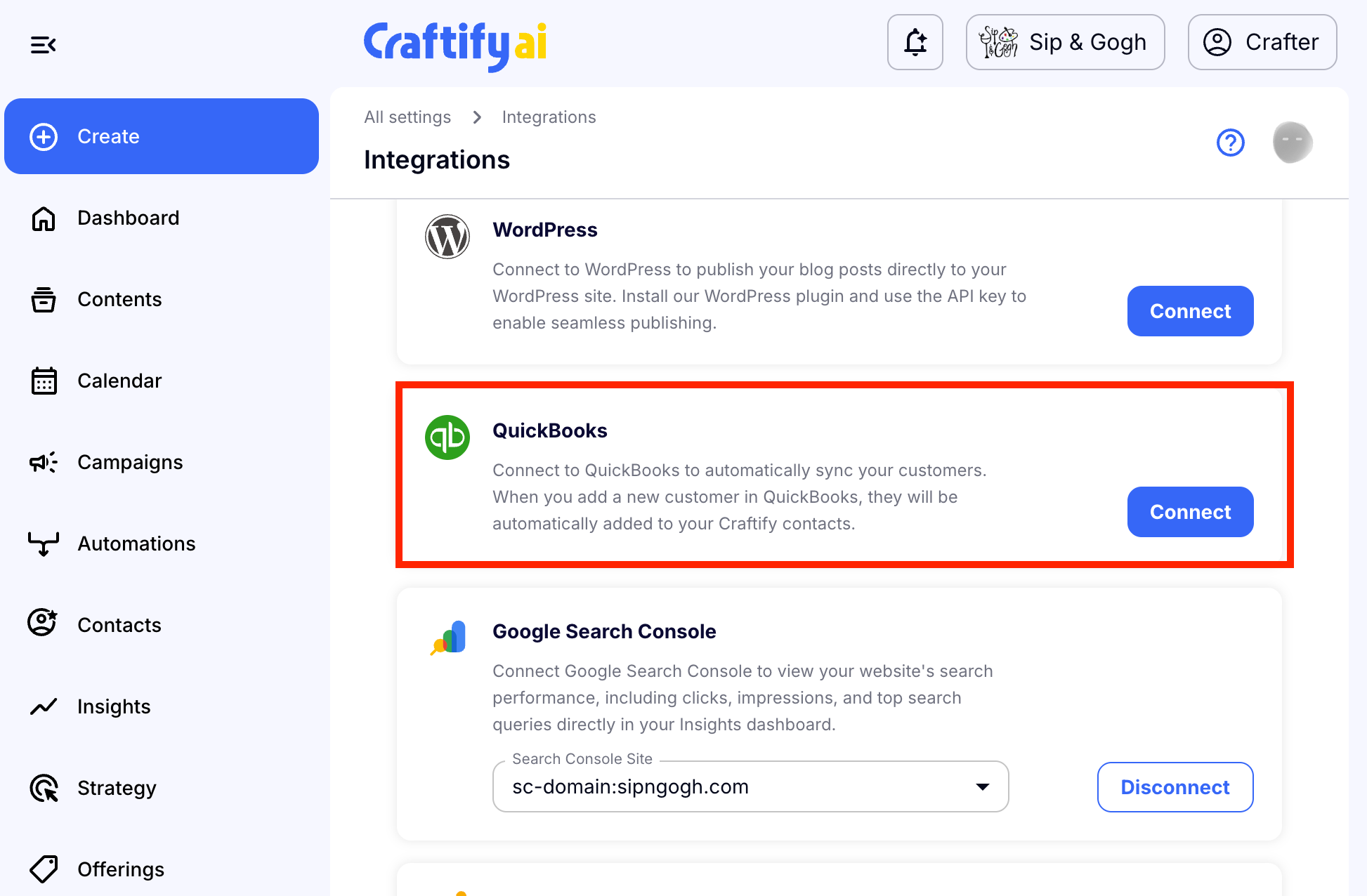 Integrating your Quickbooks account with Craftify AI is easy!
