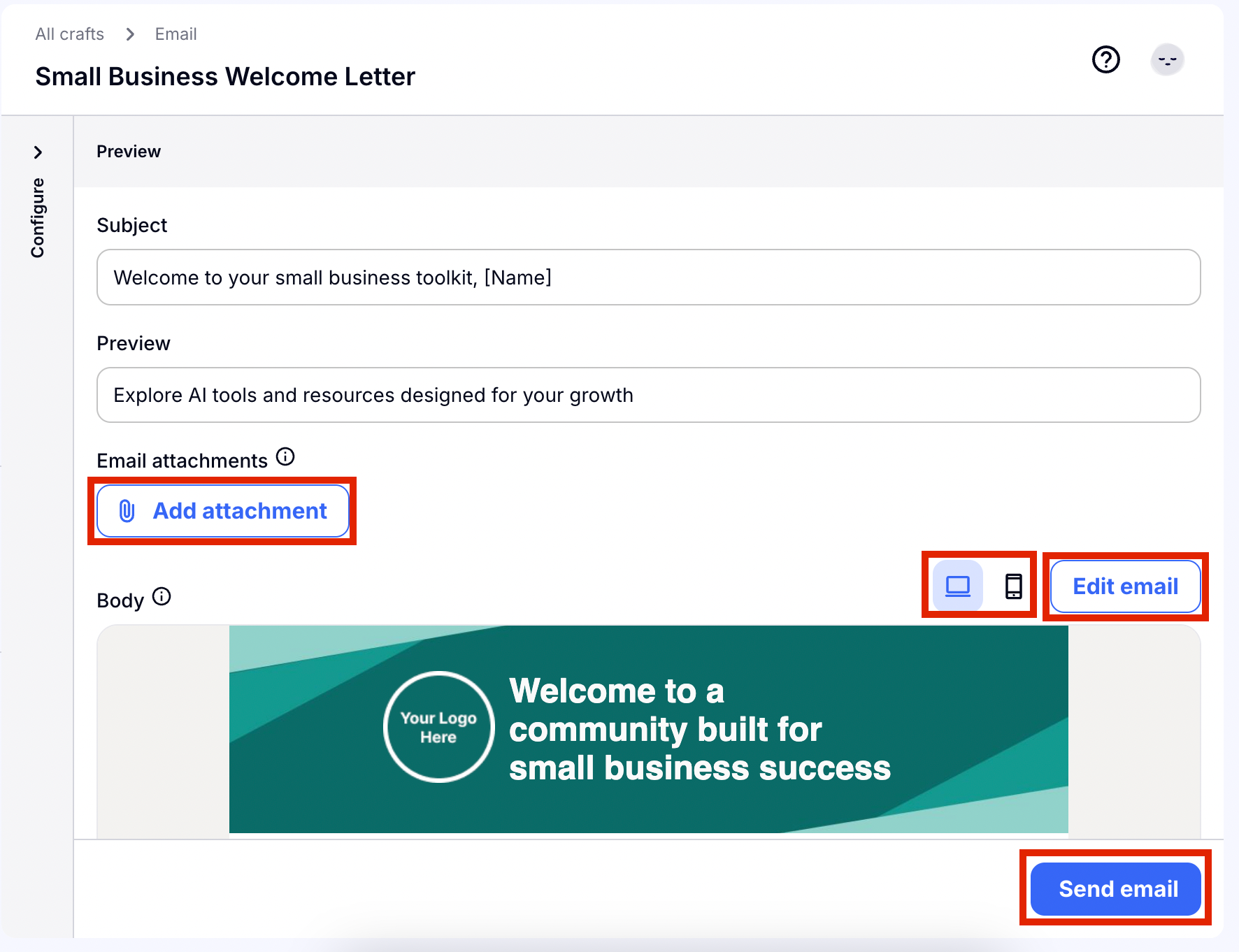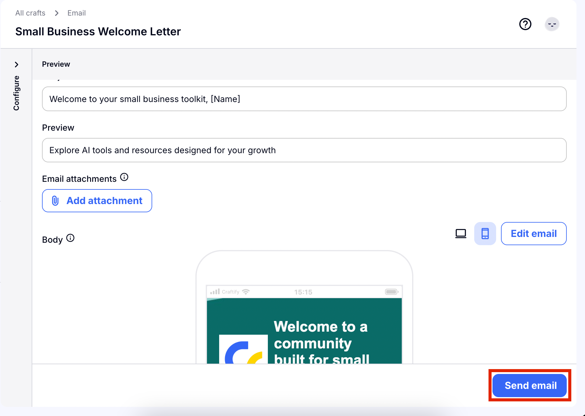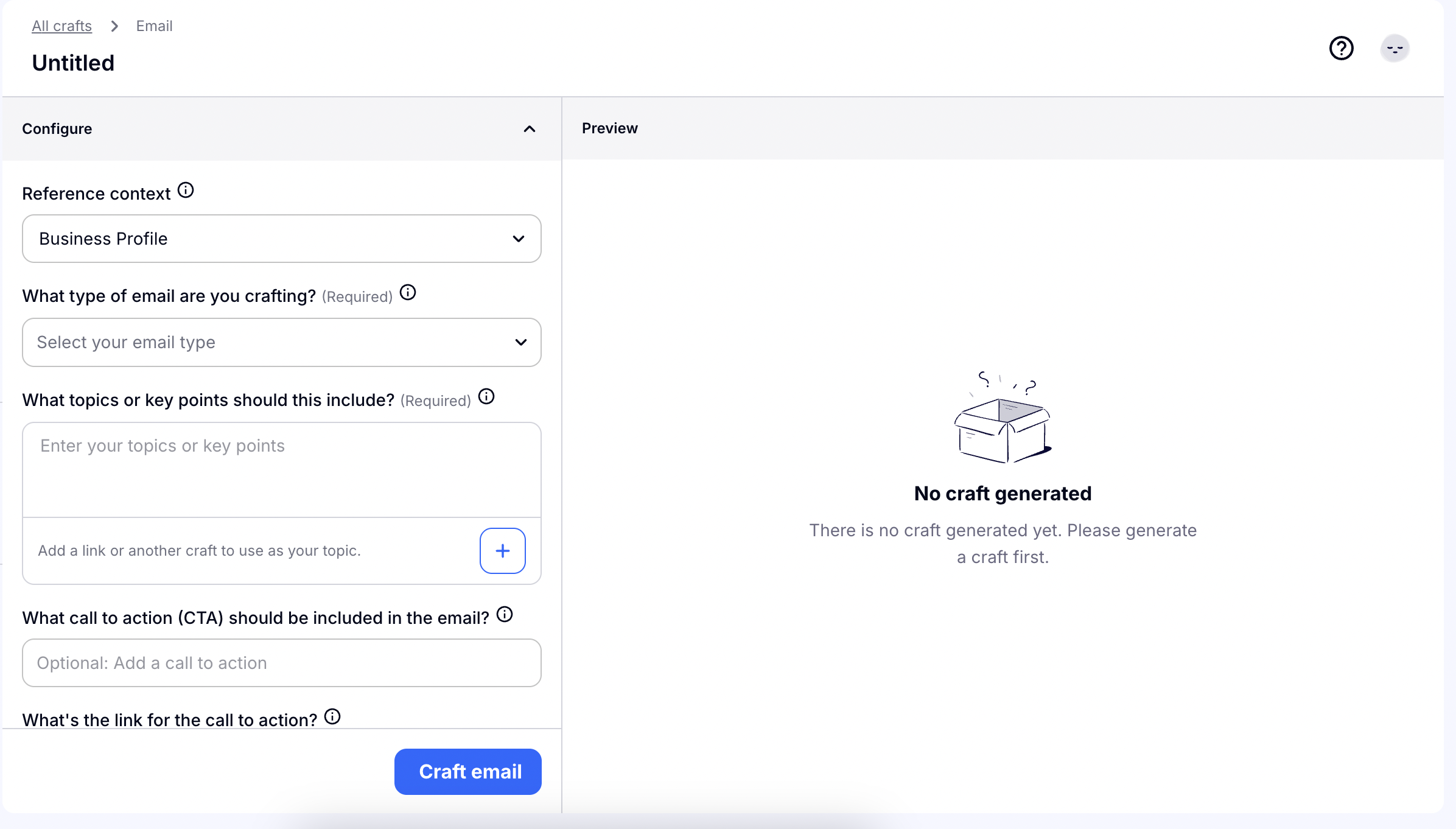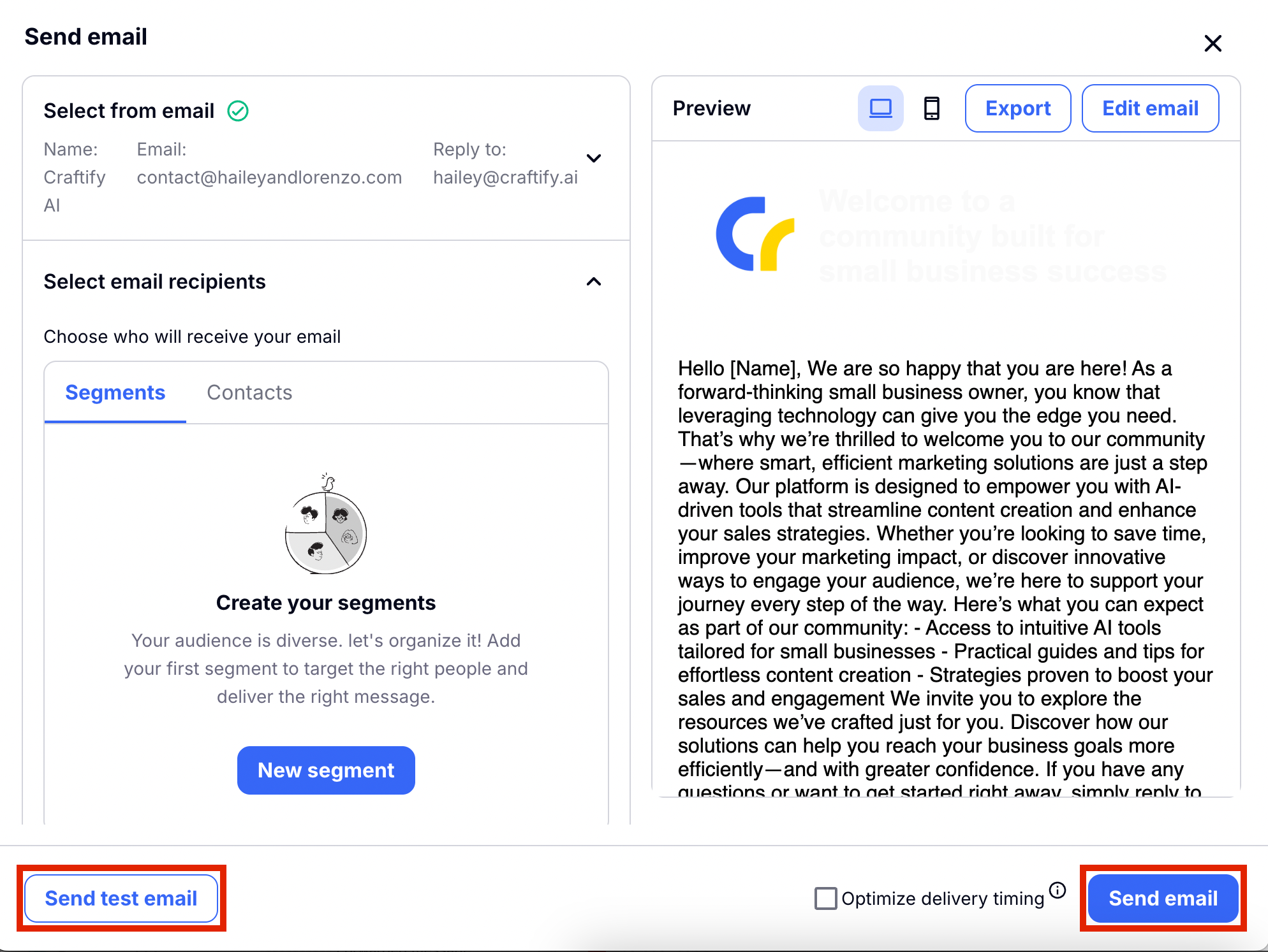 Read through your Subject, Preview, and Email. Craftify AI already did some of the hard work and designed your email for you too. If you don't like it, don't worry, we can edit it!