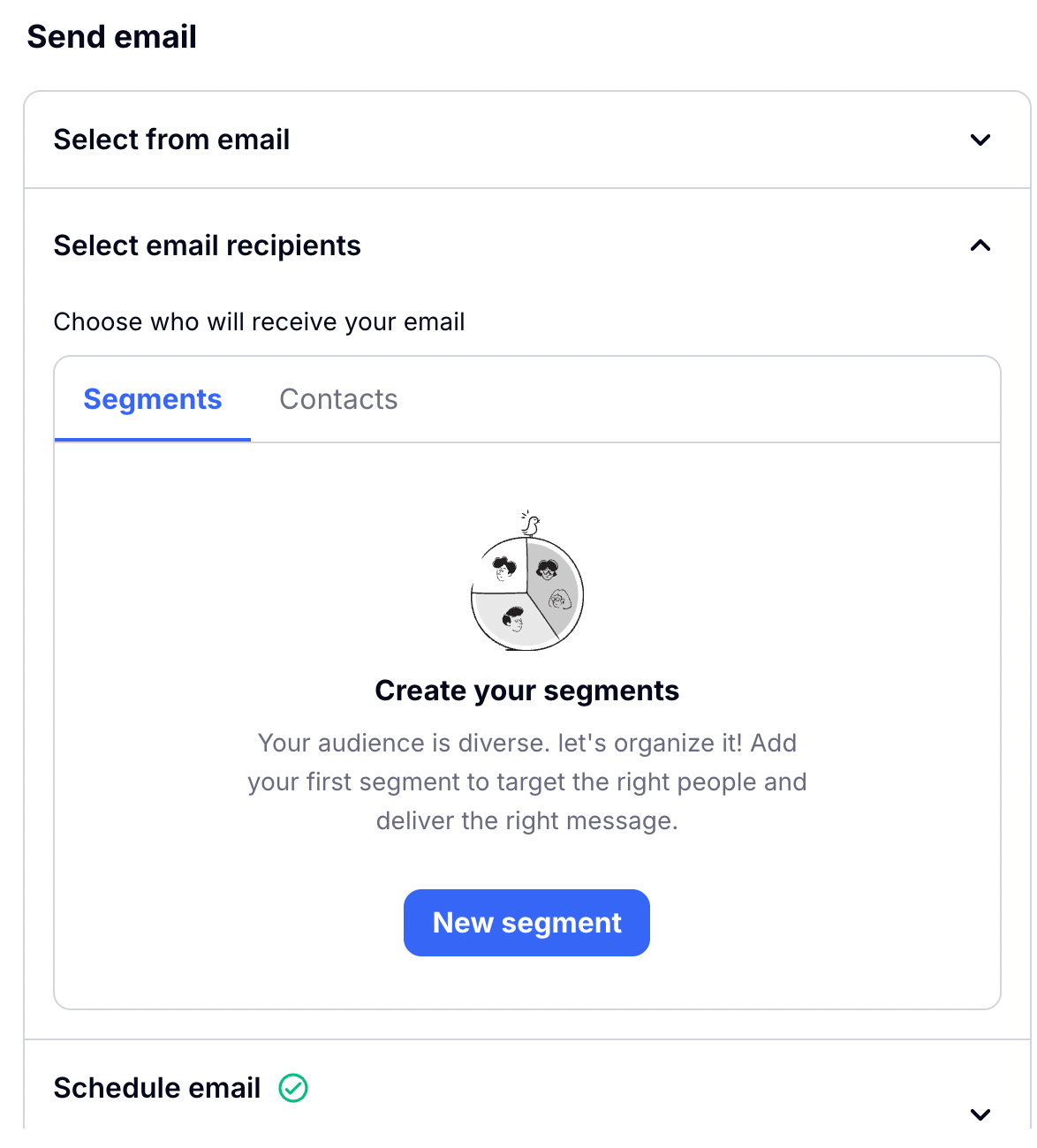 Next you can choose who you are sending this email to. If you have set up Segments, you can choose one of those here.