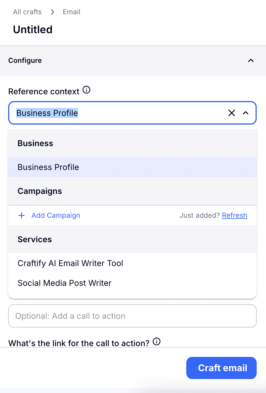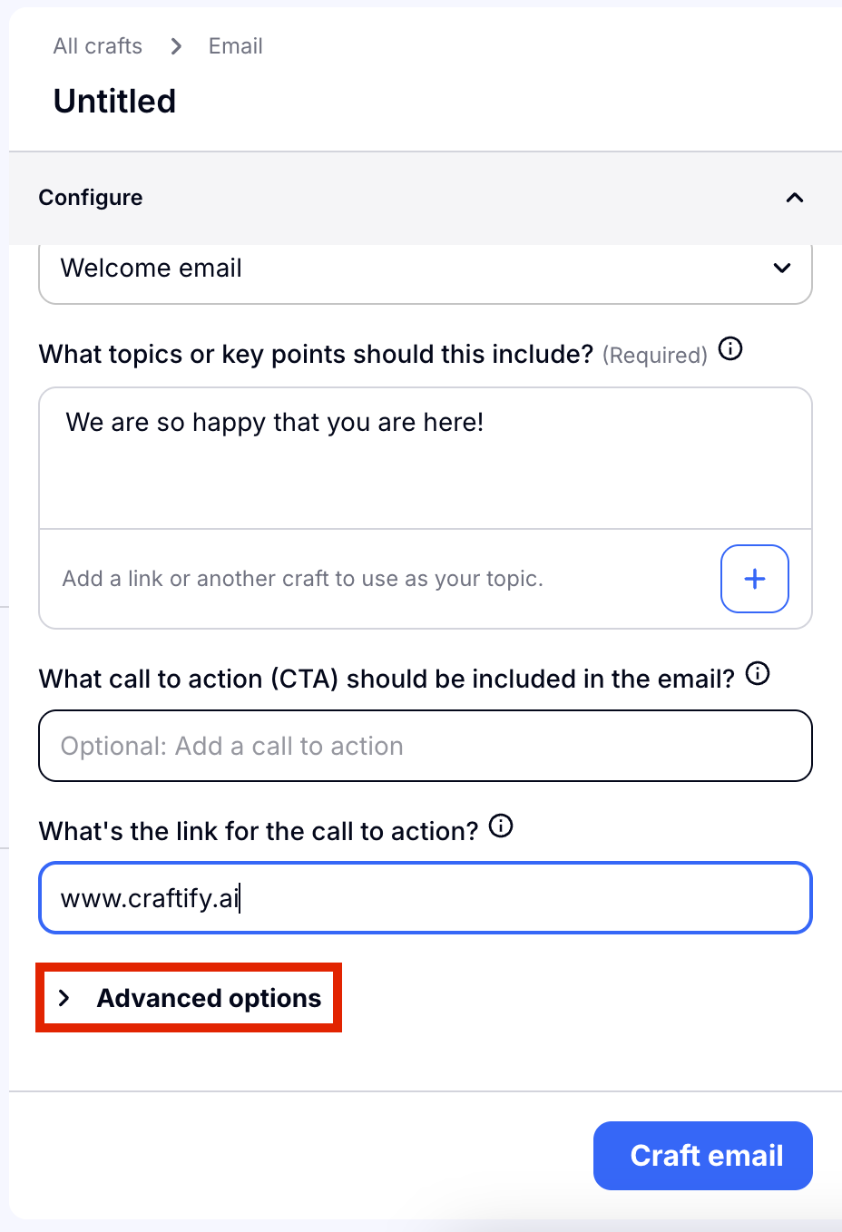 You can also add a link to your Call to Action! Craftify AI can imbed a link directly in the email for you. Just tell it where to take you!