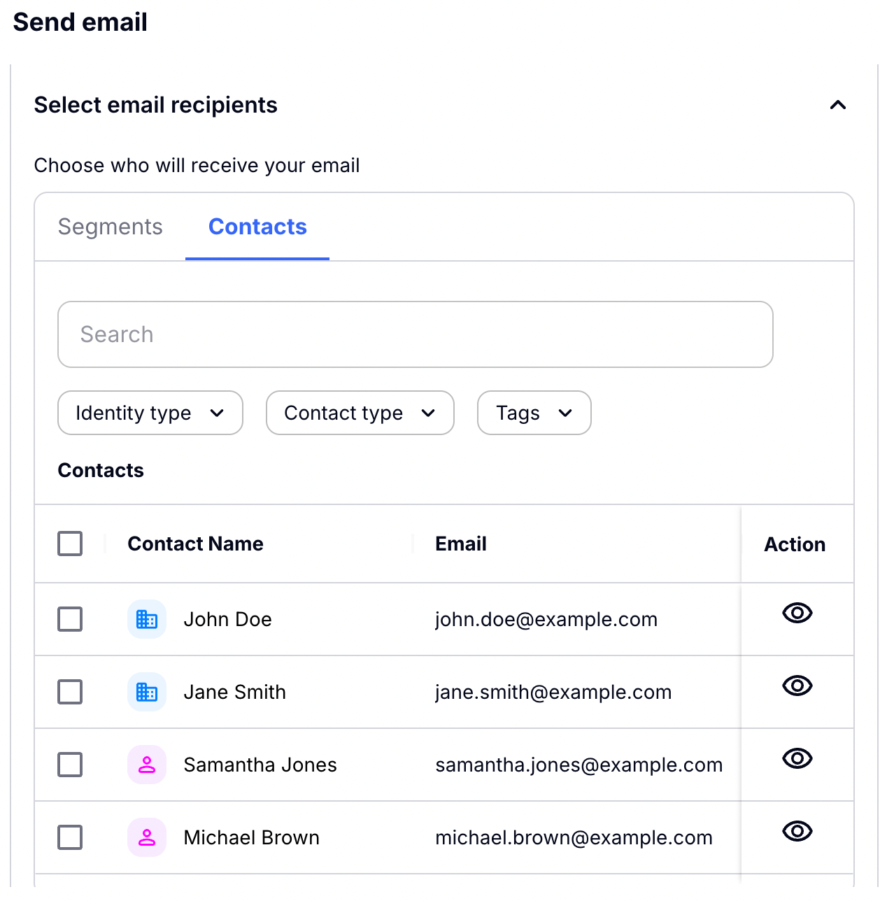 Or you can choose to individually choose which of your contacts to send the email to. Just check the box for which contacts you would like to send to.
