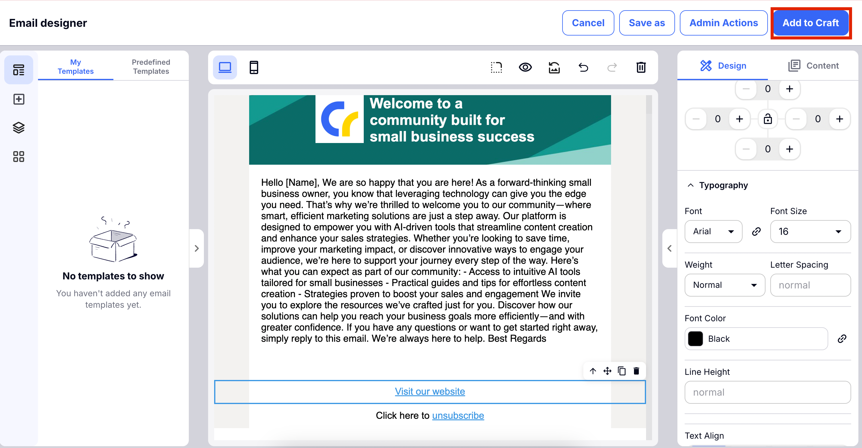 Once you are done, choose Add to Craft, and your new and improved email and design will be added to your Craft.