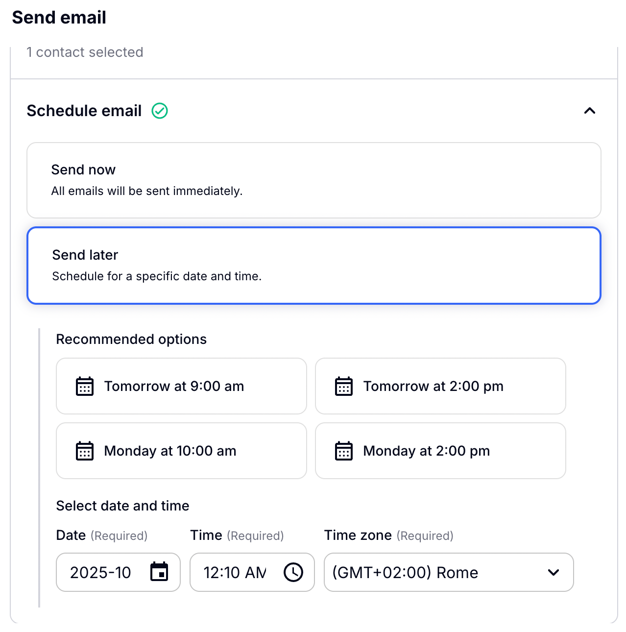 Before sending your email, you may choose to Optimize your delivery timing. This is totally optional.