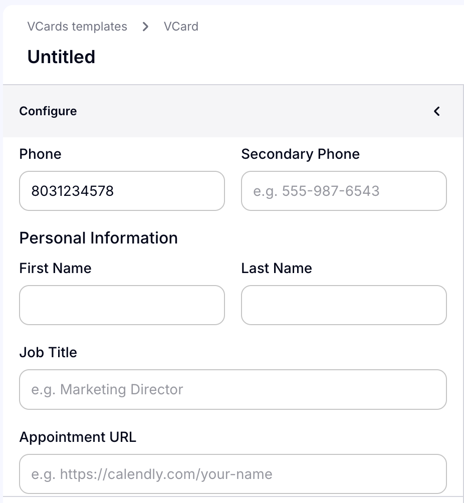 You can edit any of the details in the Configure section necessary. Choose 'Update vCard' when you're ready.