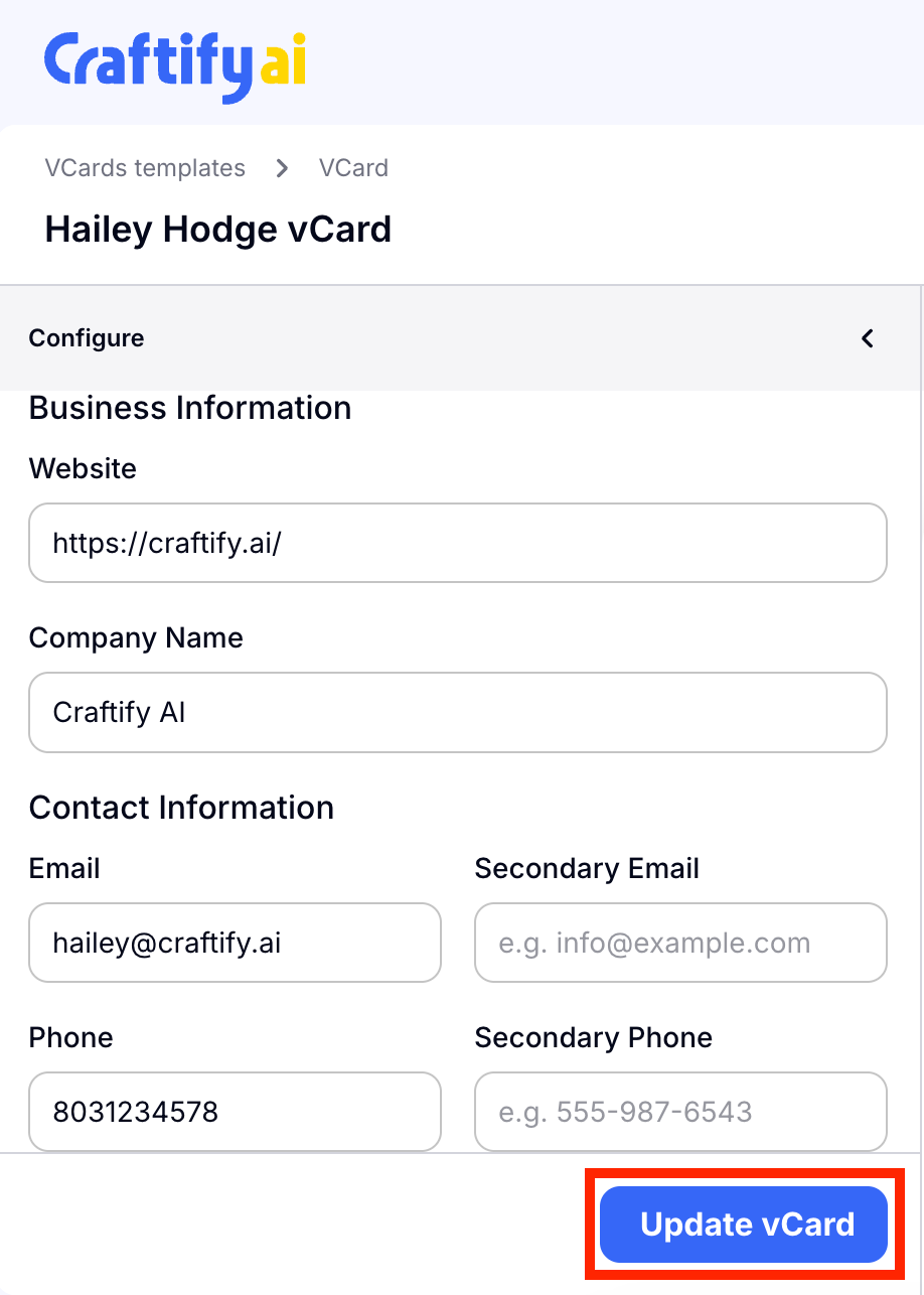 We hope that creating a vCard easily in Craftify AI will be helpful as you share your business information with new leads!